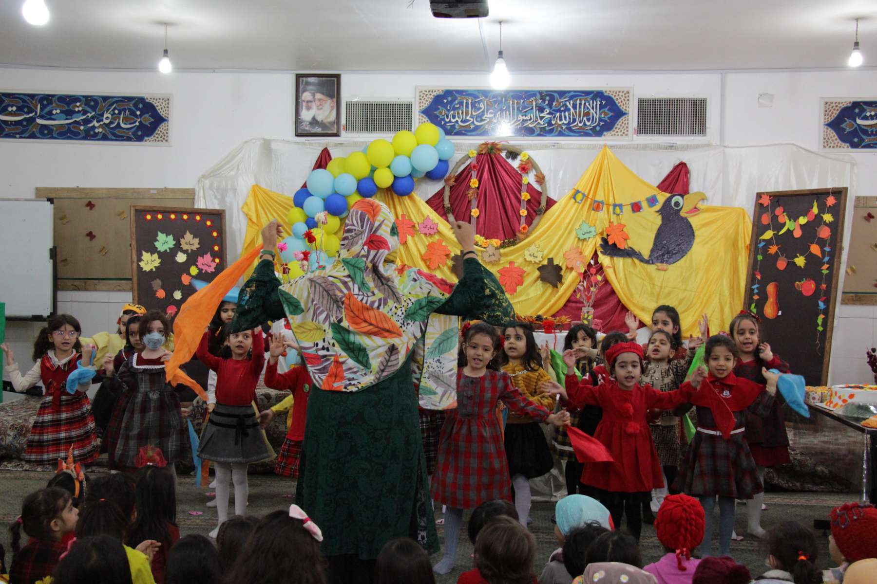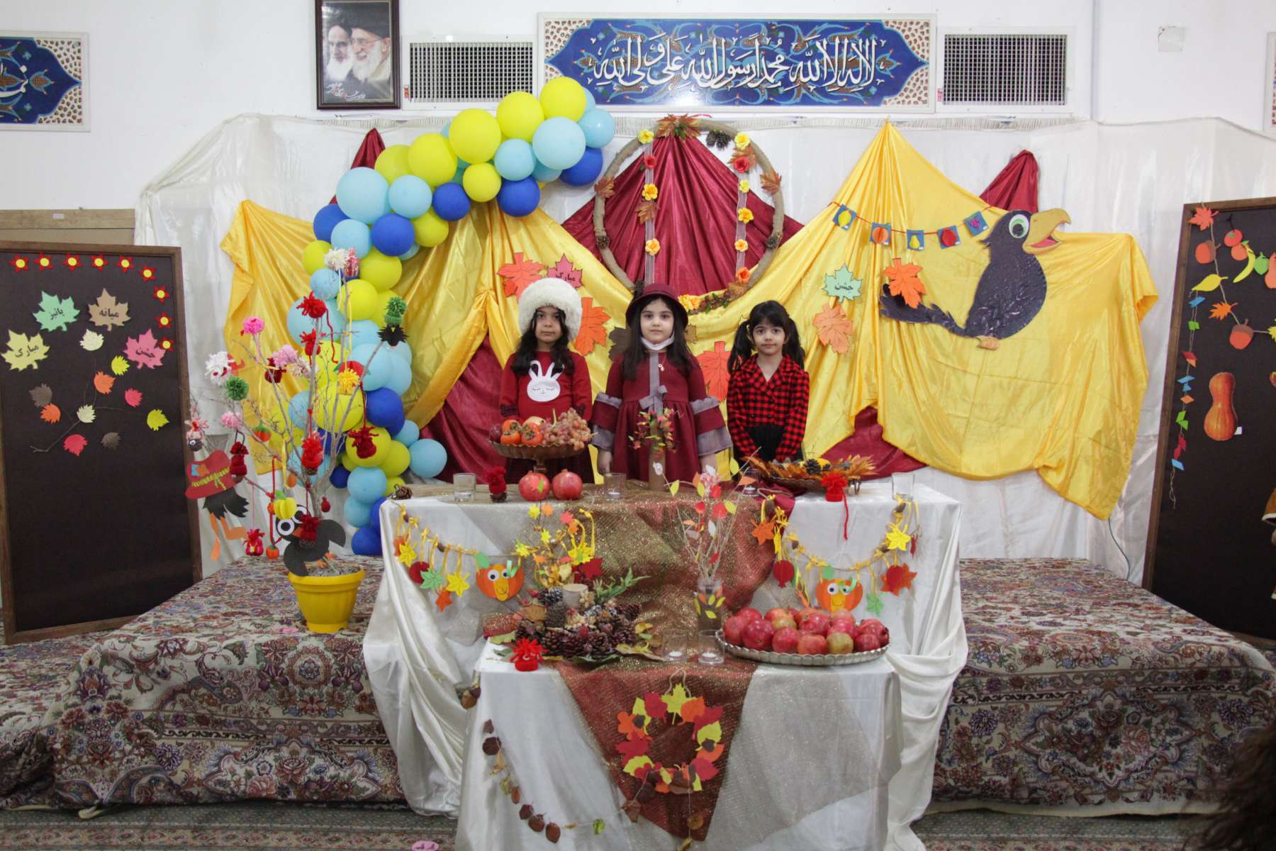 جشن میانه پائیز را در روز 18 آبان برگزار کردیم و بر آن شدیم تا میانه این رنگارنگ دل فریب را گره ای زیبا بزنیم به دنیای شاد و رنگارنگ کودکان .دختران زیبای انار به دست در یک گروه شاد با لباسهایی به رنگ پاییز، با آهنگ و ملودی شاد شعر پائیز را سرودند و روی چندین میزدر کنار سالن انواع خوراکی های پائیزی (آش انار ،لبو و کیک ،ژله و شیرینی و.....) چشم نوازی می کرد و تزئین زیبای دکور جشن با تم پائیزی تو را با خود به دنیای رنگارنگ پائیز دعوت می کرد.بعد از شادی و بازی و ترانه خواندن مربیان با کودکان درباره زیبائیهای فصل پائیز و نعمتهای رنگارنگ و خوش عطر و بوی پائیزی بحث و گفت و گو نمودند و کودکان از این نعمتها میل کردند . به دوستان خود هم تعارف کردند و از خدای مهربان برای آفرینش این فصل زیبا تشکر نمودند.