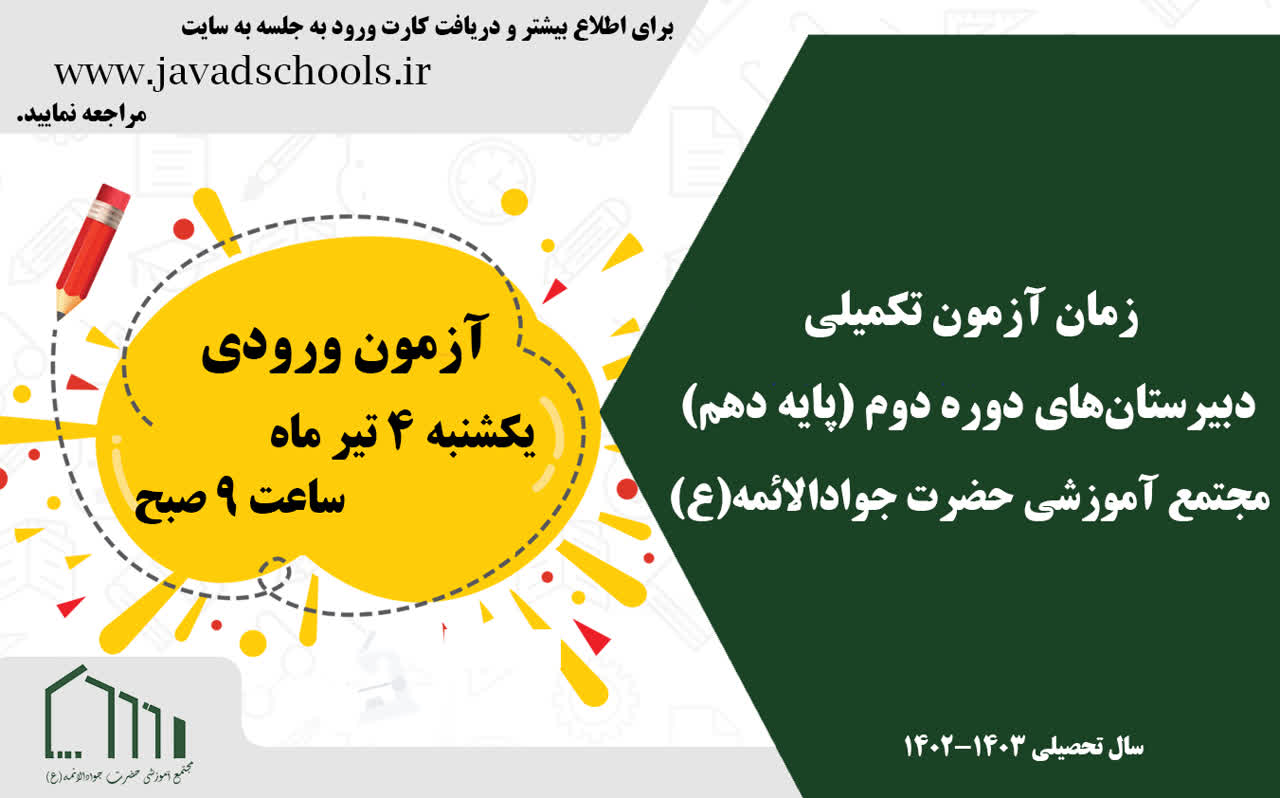 زمان آزمون تکمیلی ورودی دبیرستانهای جوادالائمه مشخص شد