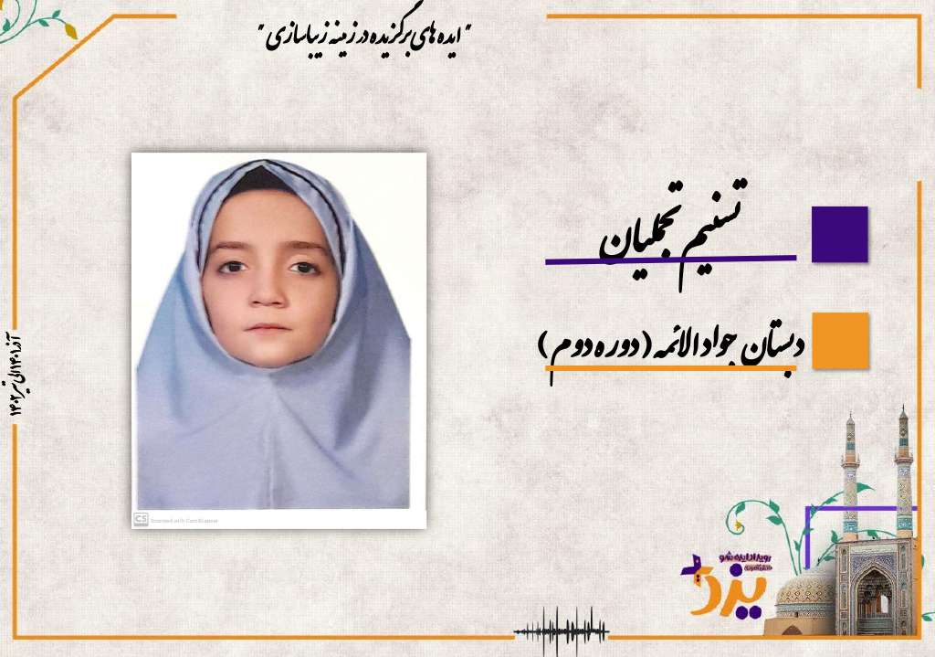 پرهام نعیمی پور دبیرستان پسرانه دوره اول، علی اصغر عبداللهی دبیرستان پسرانه دوره اول، پارسا و پوریا پروانه از دبستان پسرانه دوره دوم ناحیه 2 و تسنیم تجملیان از دبستان دخترانه دوره دوم دانش آموزان منتخب مدارس جوادالائمه بودند.