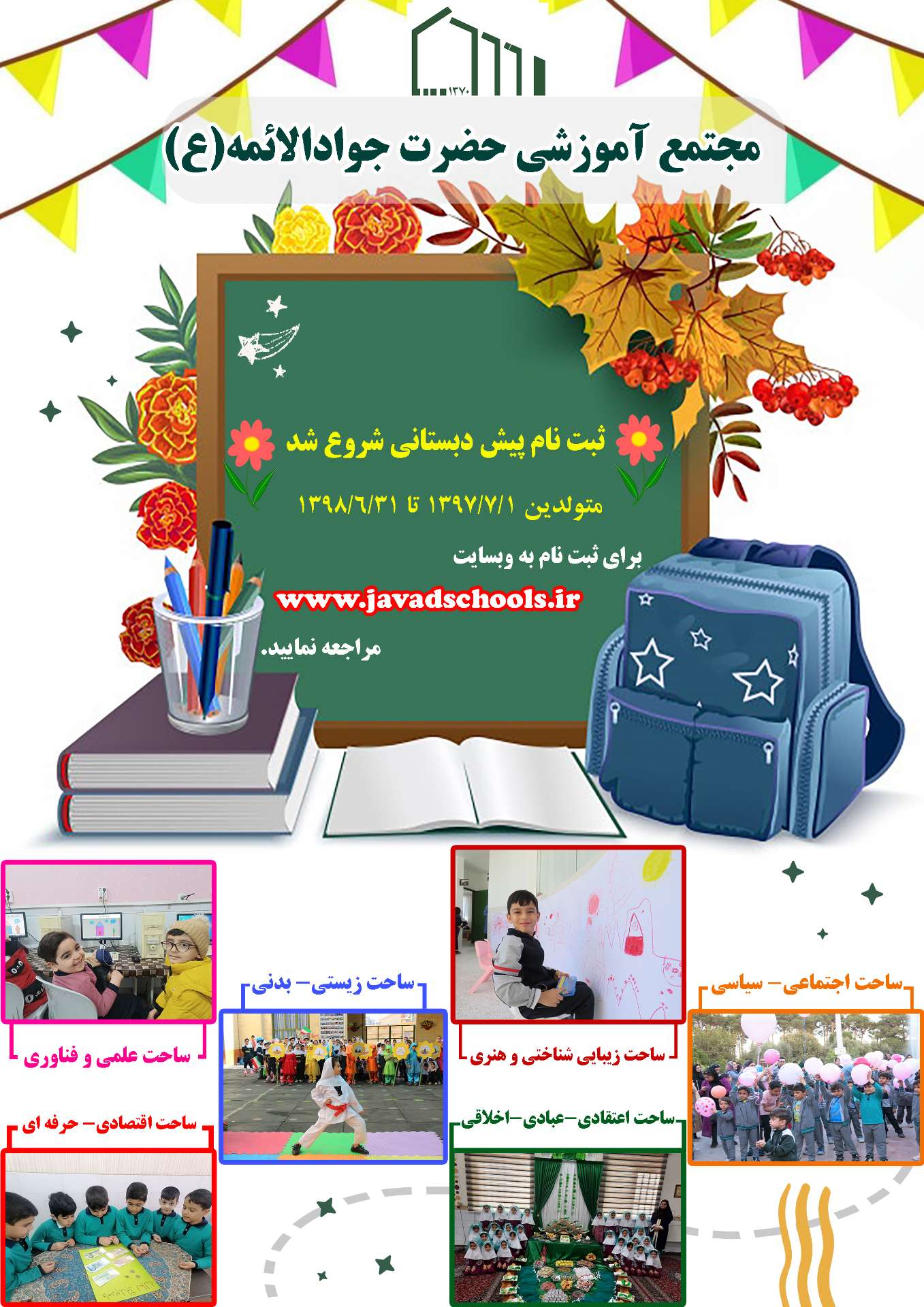 والدین گرامی؛ به پیش دبستانی حضرت جوادالائمه (ع) خوش آمدید. توجه داشته باشید سن دانش آموز جهت ثبت نام به شرح ذیل می باشد: *متولدین ۱۳۹۷/۷/۱ تا ۱۳۹۸/۶/۳۱ جهت ثبت نام پیش دبستانی۲ لطفا در صورت داشتن شرط بالا مراحل زیر را انجام دهید: ۱- اطلاعات خواسته شده را با دقت وارد نمایید و بعد از تایید ره یافت، وجه پیش ثبت نام را پرداخت فرمایید. بعد از پرداخت وجه پیامک تایید برای شما ارسال خواهد شد. ۲- برای هر نوآموز تنها یک بار اطلاعات را ثبت نمایید. ۳- زمان جلسه آشنایی با ضوابط، ره یافت و امکانات مدرسه بعد از پیش ثبت نام برای شما پیامک خواهد شد. سپاس از صبوری شما