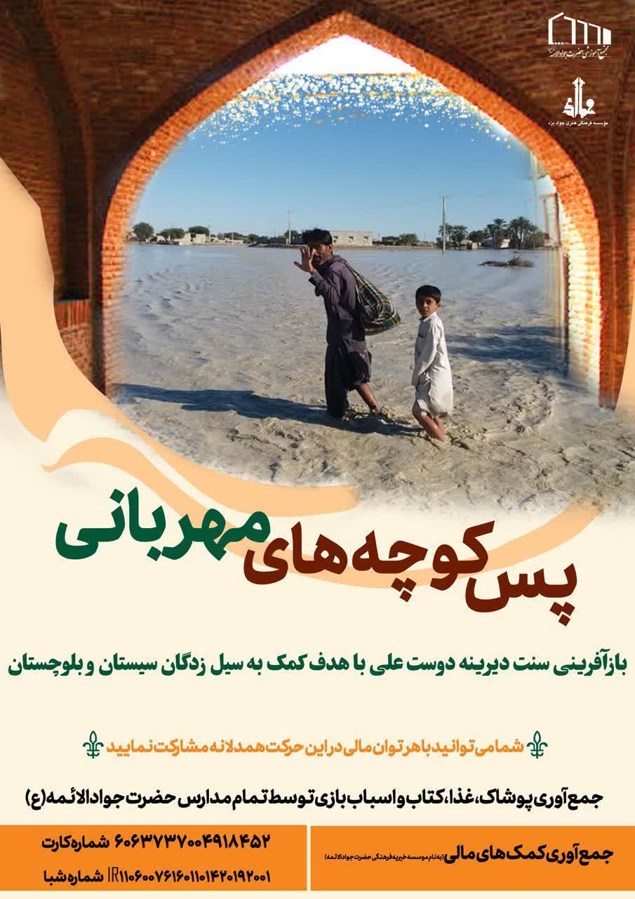 پس کوچههای مهربانی: در این طرح، دانشآموزان با جمعآوری کمکهای نقدی و غیر نقدی، به یاری نیازمندان و کودکان محروم در استان سیستان و بلوچستان شتافتند.