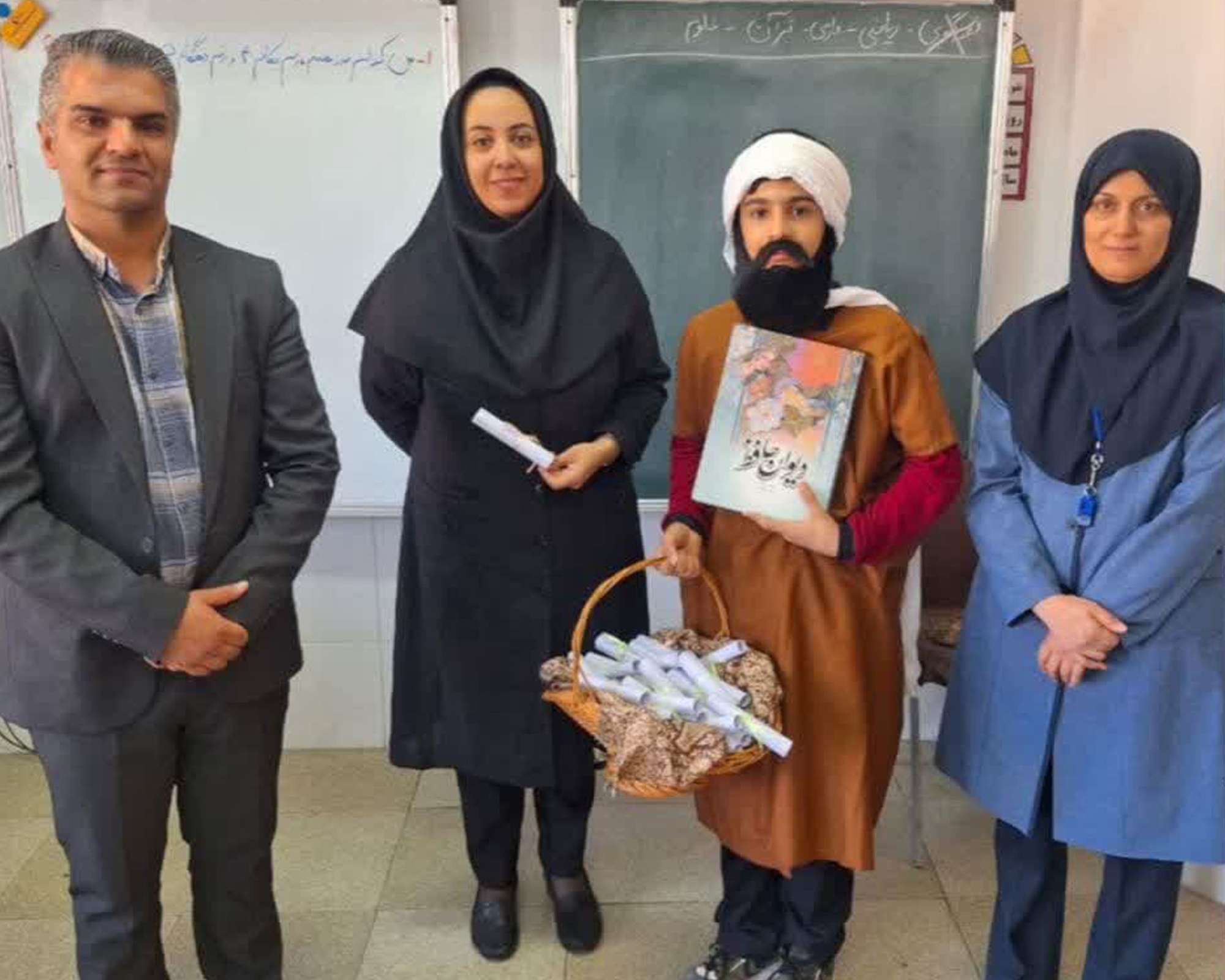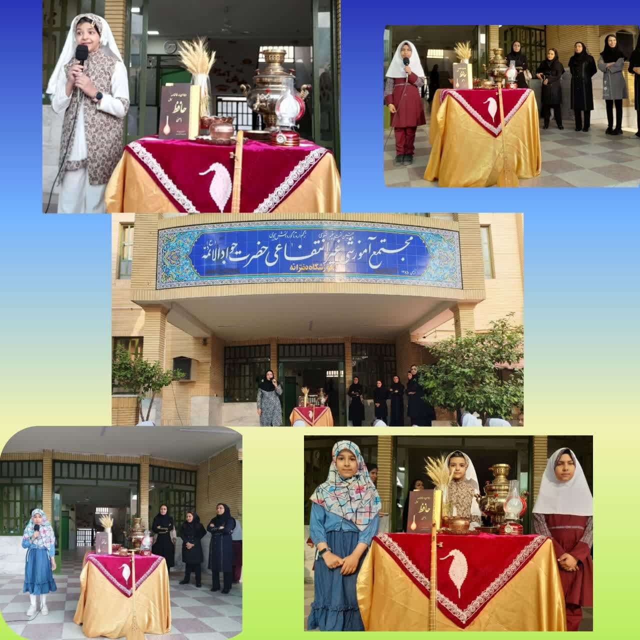 روز بزرگداشت حافظ یکی از روزهای مهم در تقویم ایرانی است که هر سال در 20 مهر ماه جشن گرفته میشود .این روز فرصتی است برای بازتاب میراث فرهنگی وادبی ایران و تجدید حیات آموزه ها و شعرهای لسان الغیب .به گزارش روابط عمومی مجتمع آموزشی، به مناسبت بزرگداشت حافظ شیرازی در روز شنبه 21 مهر ماه ، در مدارس مجتمع مراسمی برگزار شد .در این برنامه دانش آموزان به طرق مختلف با شخصیت حافظ آشنا و تفألی به شعرهای آن بزرگمرد شعر و ادب فارسی زدند .