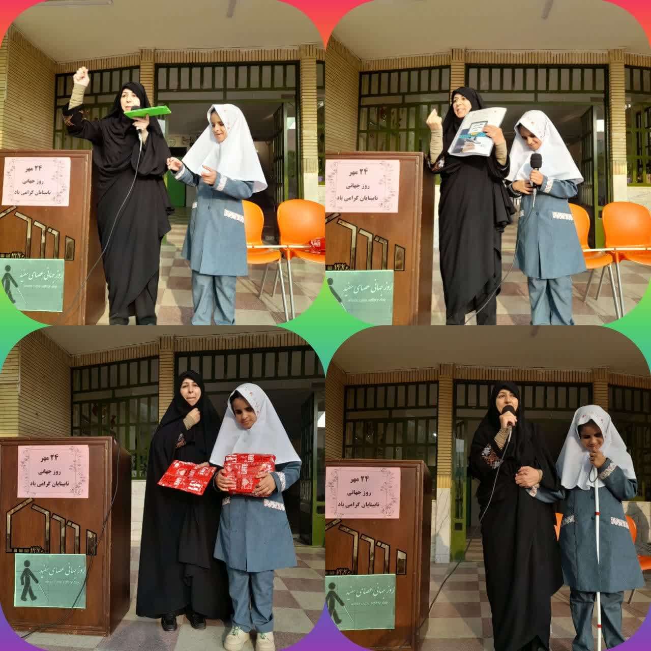 سازمان آموزشی، علمی و فرهنگی ملل متحد، (یونسکو) و شورای جهانی نابینایان در جلسه ای مشترک در سال ۱۹۵۰ میلادی، قانون «عصای سفید» را بررسی و تصویب کردند و روز ١۵ اکتبر برابر با ٢4 مهر ماه را روز جهانی «عصای سفید» یا روز جهانی “ایمنی نابینایان” اعلام کردند. در این روز در مدارس مجتمع نیز مراسم بزرگداشت برگزار شد.در این مراسم با هدف افزایش آگاهی و درک دانشآموزان از توانمندیهای افراد نابینا و اهمیت حمایت از آنان و پذیرش تفاوتهای فردی از چند تن از نخبه های فرهنگی ، قرآنی و علمی دعوت بعمل آمد که این میهمانان با ارائه رزومه ودستاوردهای خود و همچنین در مورد برگه بریل و خط بریل و ابزار آلات مورد استفاده صحبت نمودند .