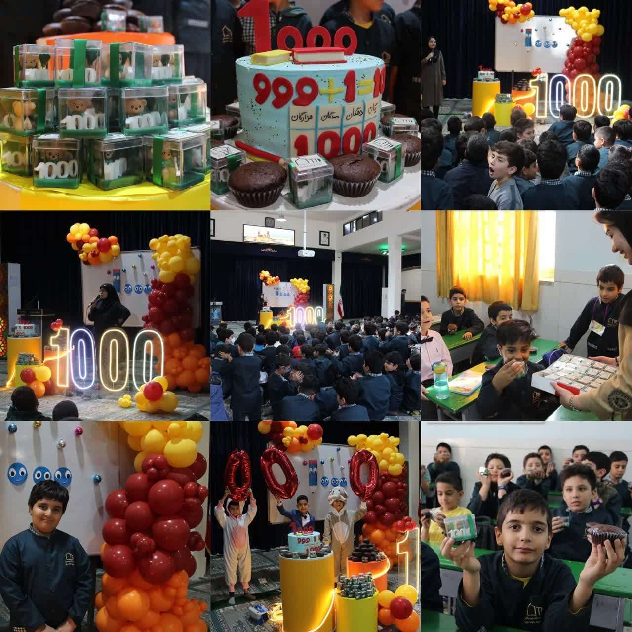 جشنی به شادمانه ی یادگیری هزار برگزار شد،اجرای نمایش عروسکی ،قصه گویی،خواندن سرود ،پذیرایی و تقدیم هدایا را به همراه داشت ‌و یک روز شاد و بیادماندنی جهت ایجاد انگیزه یادگیری اعداد چهاررقمی را برای کلاس سومی‌ها رقم زد‌. روابط عمومی مجتمع آموزشی