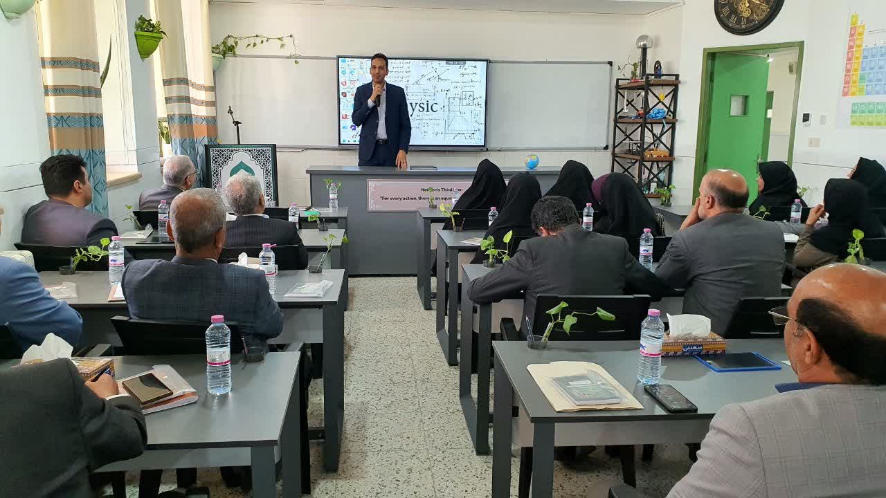 بازدید دکتر امانی، مدیرکل شورای عالی آموزش و پرورش، از کلاس فیزیک دبیرستان حضرت جوادالائمه (ع) و برگزاری جلسه کارگروه فیزیک استان یزد