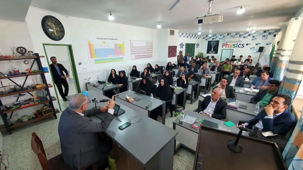 بازدید دکتر امانی، مدیرکل شورای عالی آموزش و پرورش، از کلاس فیزیک دبیرستان حضرت جوادالائمه (ع)